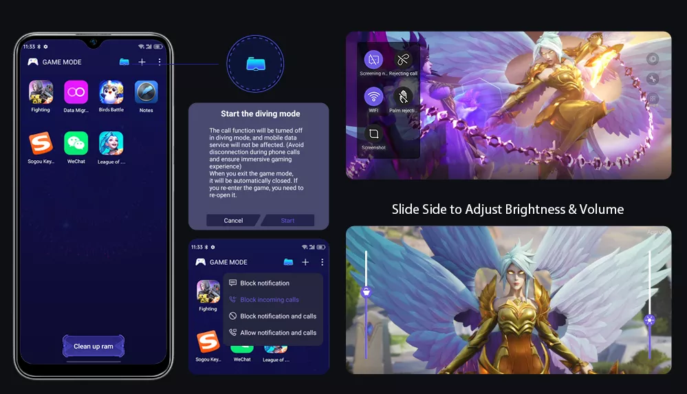 ОС Doke 2.1 позволяет быстро включить игровой режим, который исключает регистрацию случайных прикосновений и увеличивает производительность в играх.